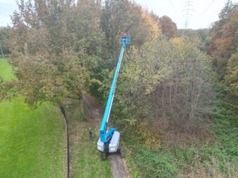 Voor de gemeente Nijmegen kregen we de opdracht om bomen te snoeien onder hoogspanningsleidingen. Een klus waar vakmanschap en veiligheid hand in hand gaan. Daarom werkten we nauw samen met een veiligheidsman van Qirion, die het proces begeleidde van begin tot eind.